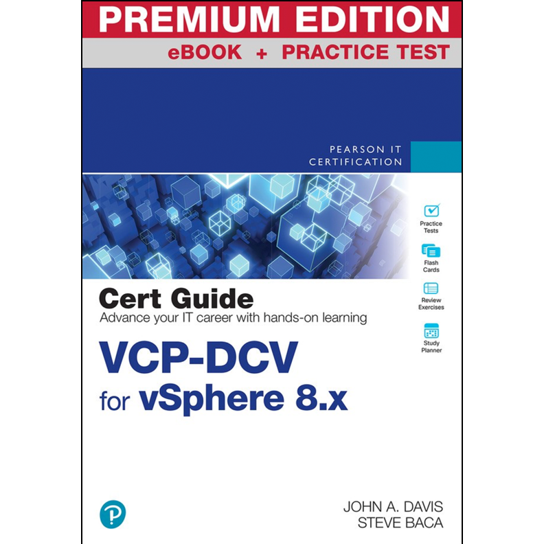 The VCP-DCV for vSphere 8.x Cert Guide Premium Edition eBook and Practice Test, is a digital-only certification preparation product combining an eBook with enhanced Pearson Test Prep practice test software. The Premium Edition eBook and Practice Test contains the following items: